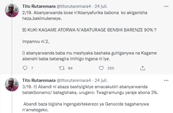 Mu gusoza rero, nta wabura kwibutsa ko ibi byose Muzehe Rutaremara abizi. ariko arabirengaho akajya mu mateshwa ngo arategura abaturage ngo Kagame aziyamamaze indi myaka 20. Umuhanzi Rugamba Sipiriyani yigeze kuririmba agira ati “Jya umenya gusaza utanduranyije cyane”, ngatuye Tito Rutaremara.