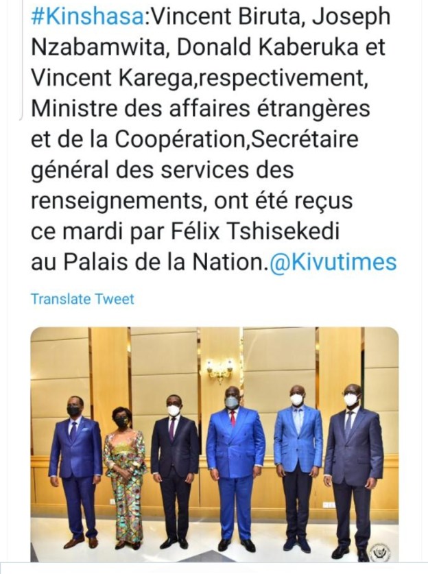 Mardi dernier ( 19/01/2021), Félix Tshisekedi a reçu une délégation rwandaise au Palais de nation pour des entretiens sur la coopération bilatérale entre la RD Congo et le Rwanda. La composition de cette délégation interroge : il y avait bien entendu l’ambassadeur du Rwanda à Kinshasa, le tonitruant Vincent Karega, le ministre des Affaires étrangères et de la coopération Vincent Biruta et le secrétaire général des services de renseignement, le général Joseph Nzabamwita. Il y avait également la ministre du Commerce et de l’Industrie du Rwanda, Soraya Hakuziyaremye, qui est arrivée après.