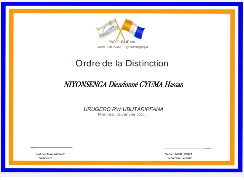 - Bwana NIYONSENGA Dieudonné alias CYUMA Hassan