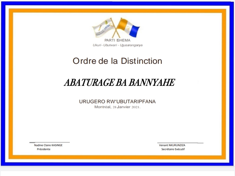 “Amateka ariyanditse Bucyana Maritini abonye umusimbura. Uwo si undi ni Thomas Nahimana washinze ishyaka rye “Ishyaka/Parti Ishema—IshemaParty.” Ab’ingezi muri iryo shyaka ni aba: Padiri Thomas Nahimana, Mme Nadine Claire Kasinge, Bwana Jean Baptiste Kabanda, Dr. Deogratias Basesayabo, Bwana Chaste Gahunde, Dr, Joseph Nkusi, Bwana Venant Nkurunziza na Bwana Ernest NSENGA… Muri iryo tangazo biyerekana ko baharanira amahoro. Ariko imvugo ikoreshwa ikomoka mu ijambo ryavuzwe na Geregori Kayibanda ku itariki ya 10 Mata 1994. (Soma Kangura N0 40-Gashyantare 1993). Ibyanditse mu itangazo ry’ishyaka rya Padiri, usanga igitekerezo ari icya CDR n’abambari bayo. Ku rupapuro rwa mbere KANGURA N0 51 handitse ngo: “ABATUTSI BAKWIYE KURYOZWA IBY’INTAMBARA” ku urwa nyuma hari ifoto ya Bucyana Martini wari perezida wa CDR munsi y’ifoto ye handitse ngo: “ISHYAKA RYACU NIRYO RITEZWEHO GUKIZA RUBANDA, NIRYO RISHYAMIRANYE N’ARI KU BUTEGETSI. Icyo kinyamakuru ni icyo mu Ukwakira 1993. Mu itangazo rya Padiri Nahimana n’abo ayobora, ntibagaragaza Ku urupapuro rwa 3 rw’icyo kinyamakuru Kangura, hari inyandiko ifite umutwe: “KWITWA UMUPARMEHUTU SI IGISEBO NI ISHEMA”. Iryo zina ISHEMA rishyizwe ahagaragara kuli 28 Mutarama 2013 rifite icyo riganishaho. PARMEHUTU yakoreye kudeta i Gitarama kuli 28 Mutarama 1961. Ishema ryayo rivukiye i Paris, France nyuma y’imyaka 52. Ni amateka reka dutegereze”.
